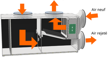 L'appareil propose deux types d'échangeurs de chaleur : thermique et enthalpique, permettant de récupérer non seulement l'énergie thermique, mais aussi l'humidité. Un algorithme avancé gère